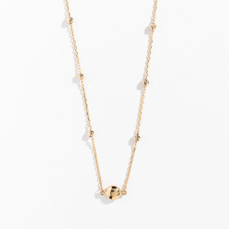 This splendid necklace is wonderfully charming. Finely crafted in 10K yellow gold, it showcases a ball charm at its centre, and is paired with a 18 yellow gold beaded chain.