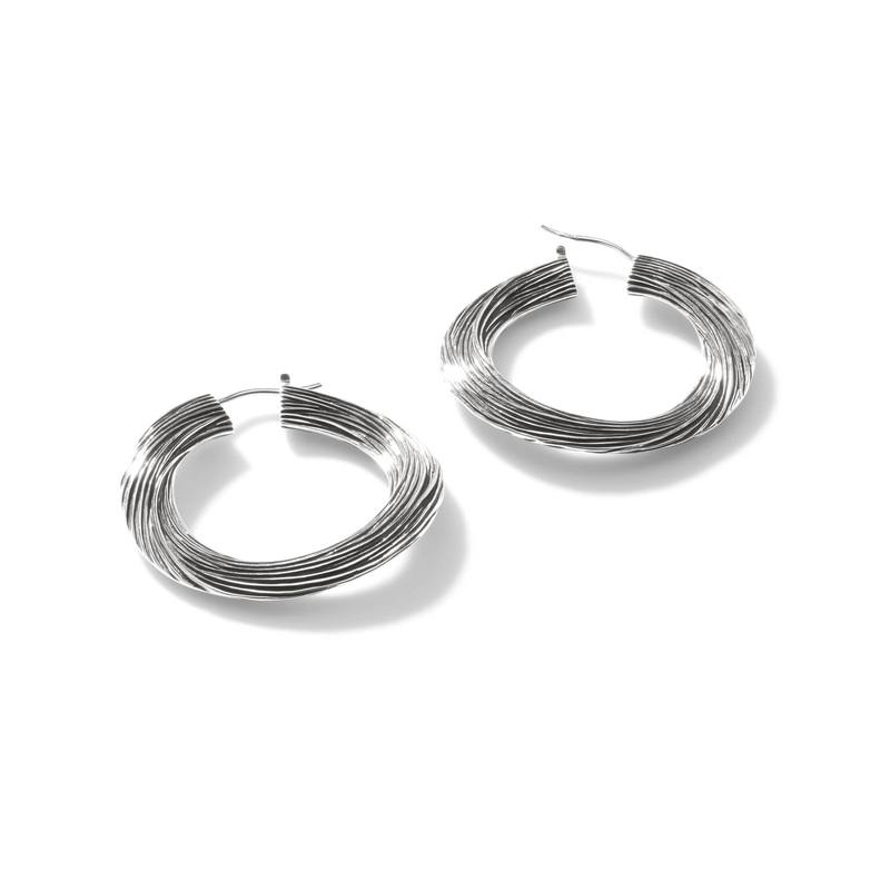 Bamboo Silver Hoop Earrings (Dia 23mm)Style# EB50083