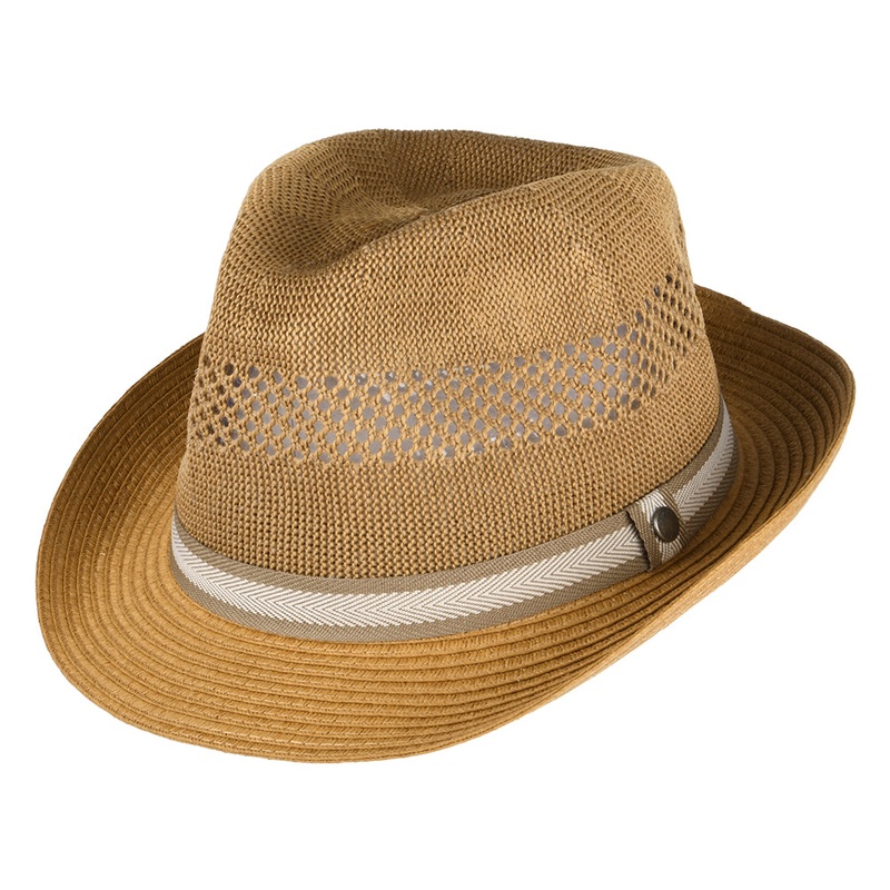 The Barbour Craster Trilby Hat in dark tan is a lightweight crushable summer hat. This unlined hat features vented crown, a striped hatband and a Barbour pin on the side. A stylish hat perfect for the summer days!Hat Details:Crown made of 100% polyesterBri