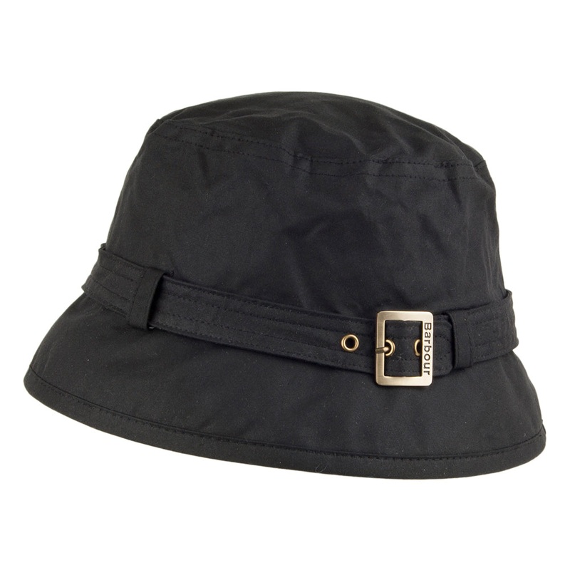 The Barbour Kelso bucket hat in black is made to the highest quality that you would expect from the iconic fashion brand. The waxed cotton exterior makes it perfect for light rain. A buckle strap surrounds the crown and can be used to size down the hat for a better fit. The inside of this hat is unlined to keep you well ventilated.