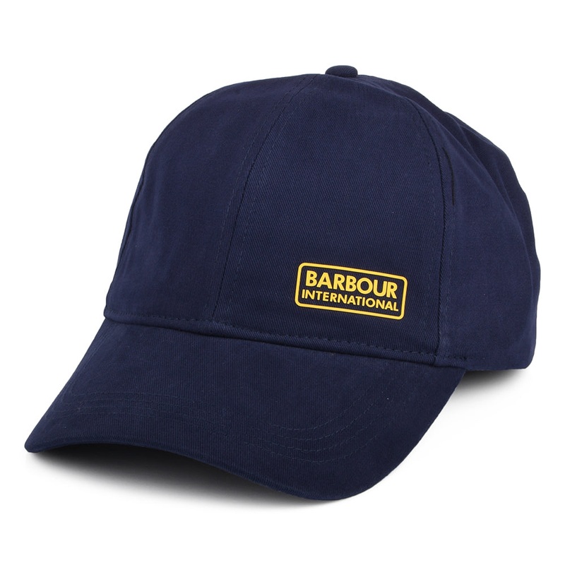 The Barbour International Norton Drill Baseball Cap in navy blue is a lightweight cap made of 100% cotton and features an adjustable strap at the back for easy sizing. It is finished with a rubber Barbour logo on the left side of the unstructured crown. Ha