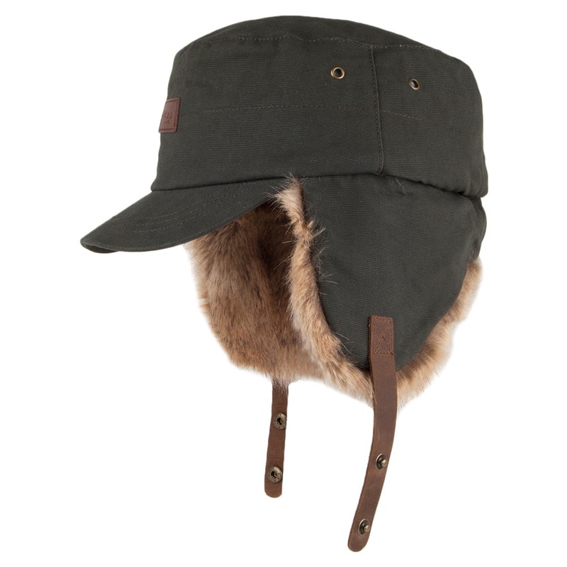 Here is the Barts Foryst Army Cap with Earflaps in army green. This cap has faux fur earflaps which can be worn up or down with a buttoned strap. The cap features a unstructured crown and quilted lining for extra warmth and comfort. There’s a leather Barts tab on the front and eyelets on the side.