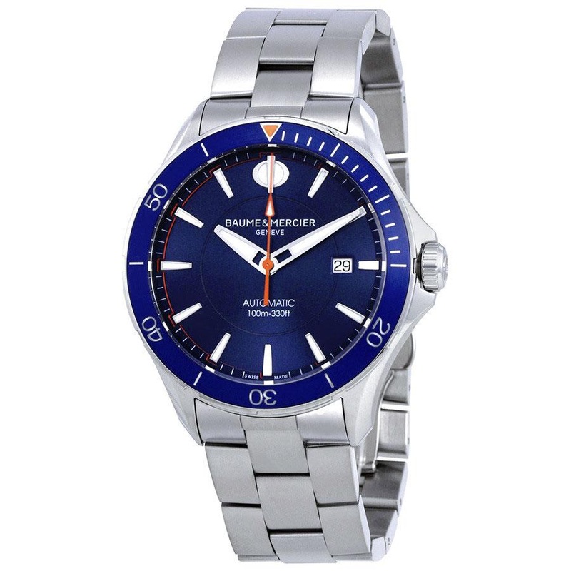TECHNICAL DATABrand: Baume & MercierFamily: ClassimaReference: M0A10378Name: Baume&Mercier Men’s M0A10378 Clifton AutoCASEMaterial: SteelGlass: Sapphire GlassDiameter: 42 X 0Case Thickness: 10.3Water Resistance: 5 ATMDIALColor: BlueDial Markers: No numeralsBezel: Stainless SteelMOVEMENTType: AutomaticCalieber: AutomaticBase Caliber: Sellita Caliber SW200Reserve: 38BANDMaterial: SteelColor: SteelClasp: Fold claspFUNCTIONSDate,OTHER FUNCTIONSLuminescent Hands,Luminous indexes ,Rotating Bezel ,
