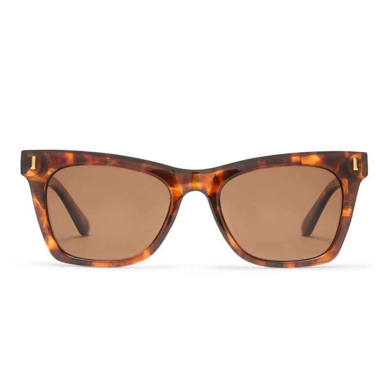 Finished in a dark tort frame with brown mono polarized lenses.