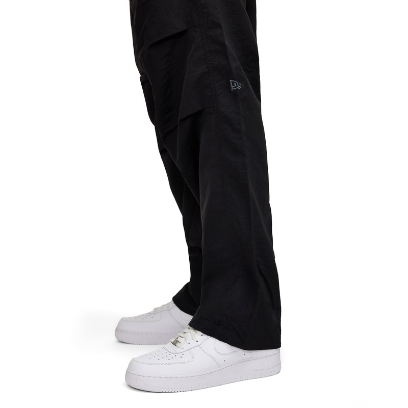 The Black Parachute Pants features an embroidered New Era at the left leg with snap button pockets at the rear and adjustable pant cuffs.