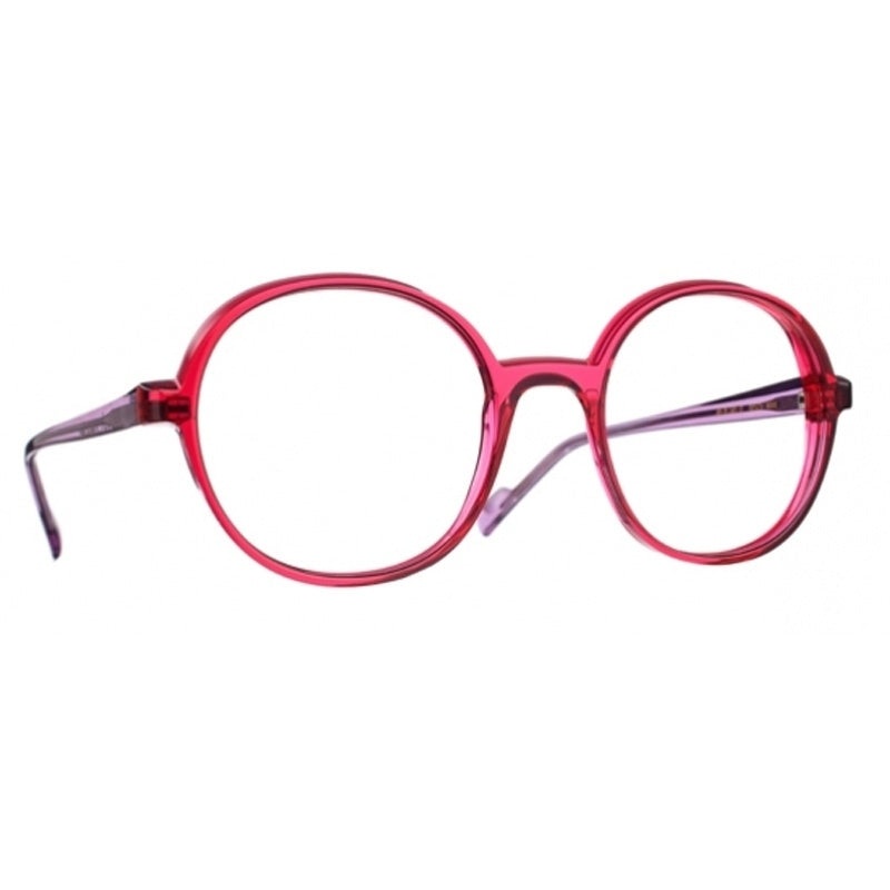 Blush model Bisou - 2024 Eyeglasses collectionBisou technical information Size:[Size-Bridge-Temples] Gender:Glasses for Women Material:Acetate Shape:Round Category:Fashion Lens Type:Demo lens Note: