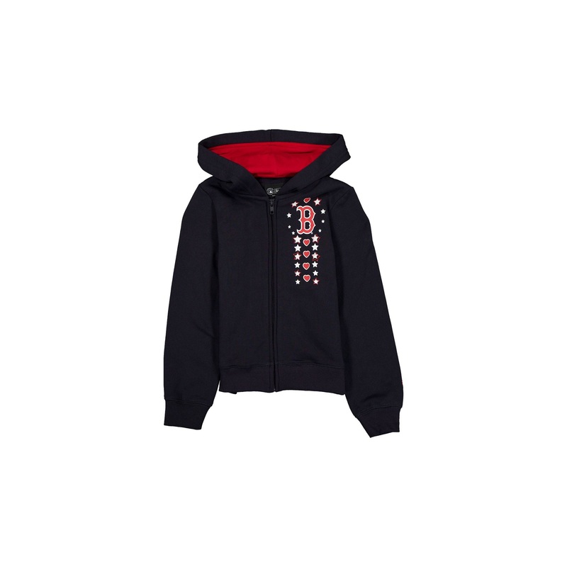 The Boston Red Sox Girls Star Hoodie features a screen-printed Red Sox logo and stars graphic at the left with a zipper closure and hood.