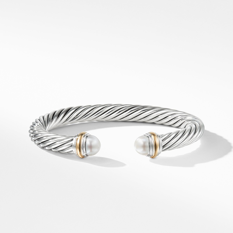 Sterling silver and 14-karat yellow gold White cultured freshwater pearl, 8-8.5mm diameter, Cable, 7mm wide Ref: B04425 S4BPEL