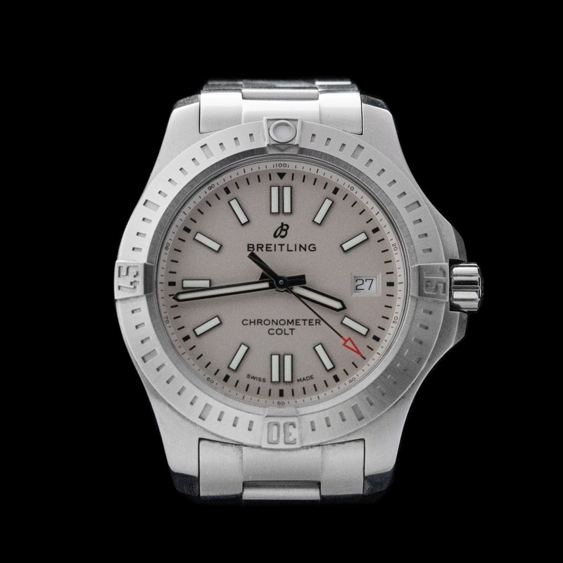 WHAT WE LOVE: It is great to see a watch that can just do everything right. The Colt has a charming utility to it, an unfussy way of being wearable and useful. Brand: Breitling Reference: A17313101G1A1 Model: Chronomat Colt Movement: Automatic Case Materia