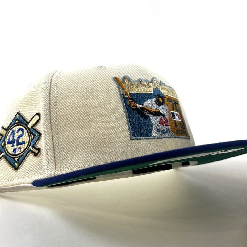 BROOKLYN DODGERS 75 JACKIE ROBINSON New Era 59Fifty Fitted Hat (Chrome White Royal Blue Green Under Brim) 7