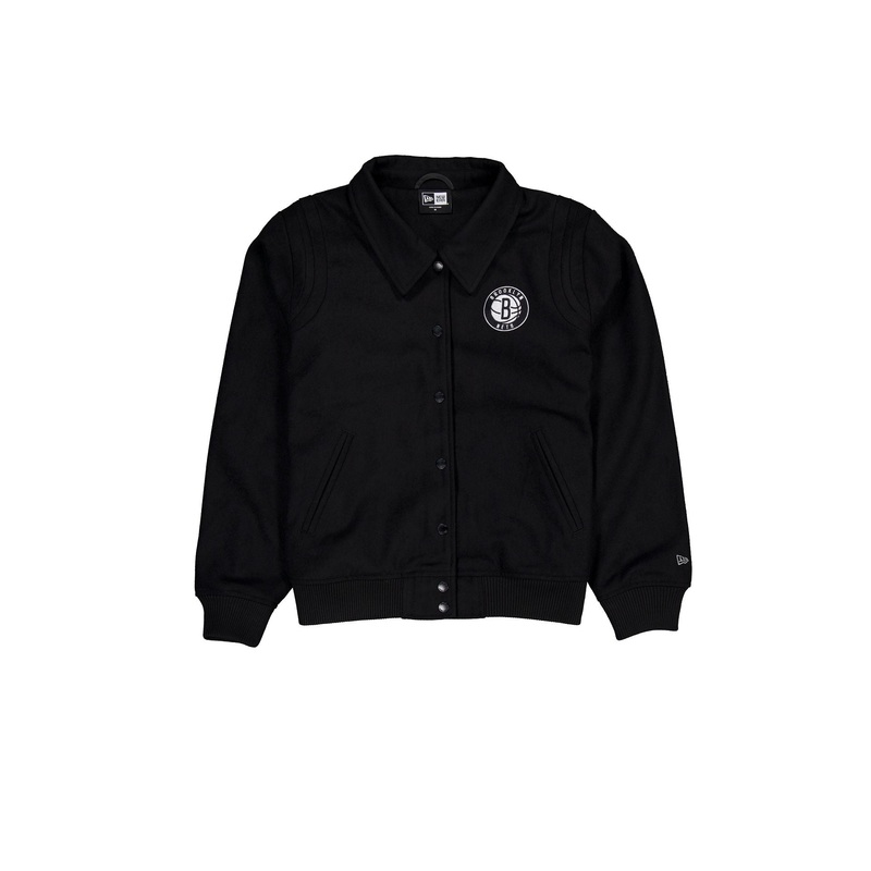 The Brooklyn Nets Sport Night Women’s Jacket features an embroidered Nets logo at the left chest with a snap button closure and a twill applique team wordmark at the rear.