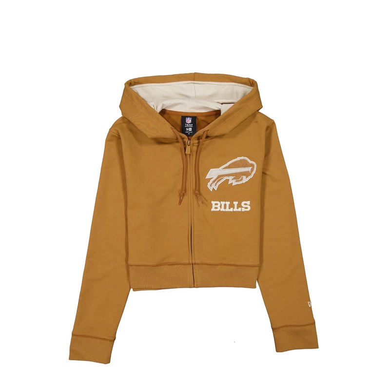 The Buffalo Bills Light Bronze Logo Select Women's Full-Zip Hoodie features a corduroy applique Bills logo above an embroidered team wordmark at the left chest with a full zip closure.Fabric: 93% Cotton, 7% Spandex