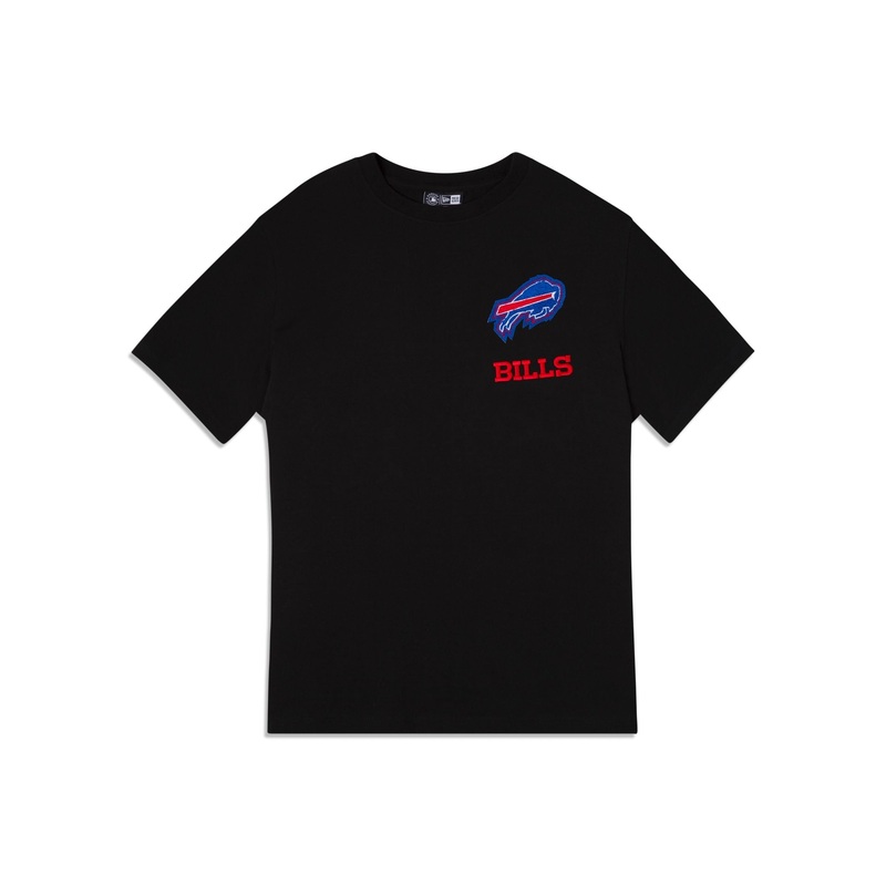 The Buffalo Bills Logo Select Black T-Shirt features a chenille applique Bills logo above an embroidered team wordmark at the left chest.