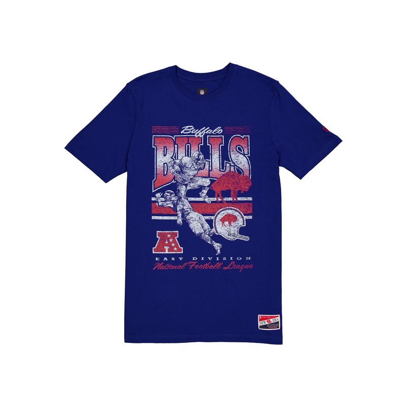 The Buffalo Bills Throwback Distressed T-Shirt features a distressed screen-printed Bills graphic at the front.Fabric: 100% Cotton