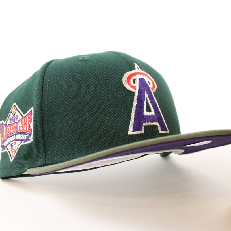 California Angels 1989 All Star Game New Era 59Fifty Fitted Hat in Dark Green, Olive and Purple Under Brim.