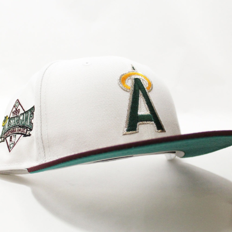 California Angels 1989 All-Star Game New Era 59Fifty Fitted Hat in White, Maroon and Teal Under Brim.