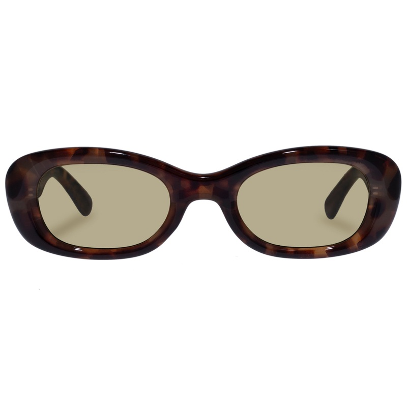 Finished in a dark tort frame with khaki tint lenses.