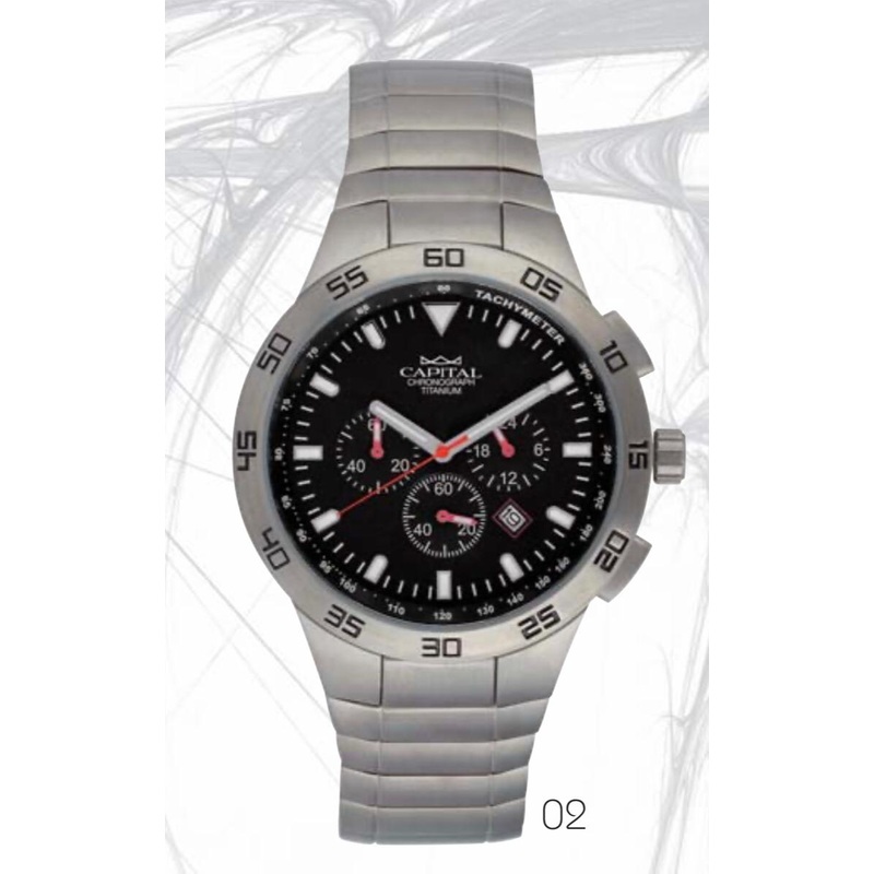 Watch with case and bracelet in Ultralight, Stainless, Hypoallergenic Titanium.Quartz movement with dateScrew bottom10 ATM waterproof