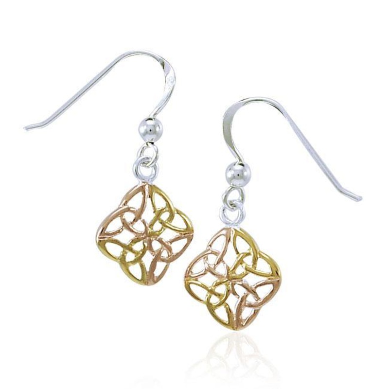 Celtic Knotwork Three Tone Earrings OTE462The basic symbolism of Celtic Knotwork is that of the "great cosmic loom of the universe." Its unbroken, interwoven knots symbolize the continuity of the Spirit throughout existence. Incorporated into Celtic art fo