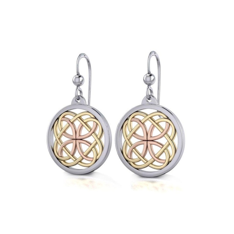 The basic symbolism of Celtic Knotwork is that of the “great cosmic loom of the universe.” Its unbroken, interwoven knots symbolize the continuity of the Spirit throughout existence. Incorporated into Celtic art for millennia, the Celtic Knot has become distinctly recognizable for its interconnectedness and appears in myriad forms and designs, each one more compelling than the last. These beautiful Celtic Knotwork dangle earrings designed by Peter Stone are a tasteful reminder of the fullness of the eternal.
