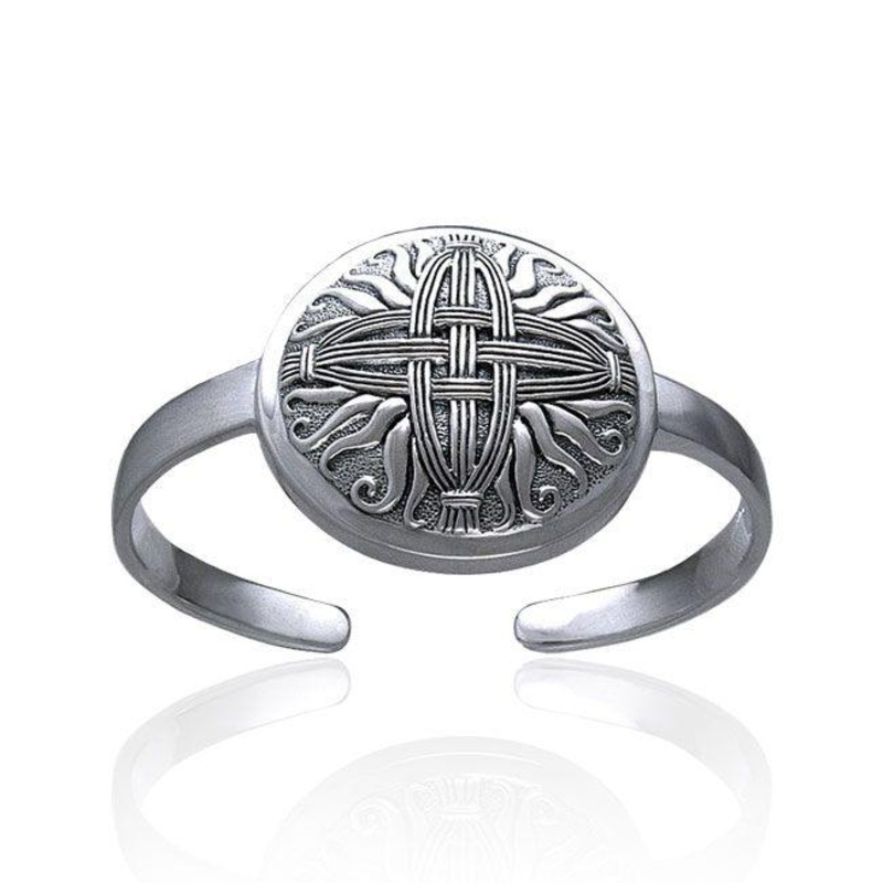 The stylizedBracelet features the cross of St. Brigid, a symbol of protection and inviting warmth with her sacred fire. Handcrafted sterling silver.