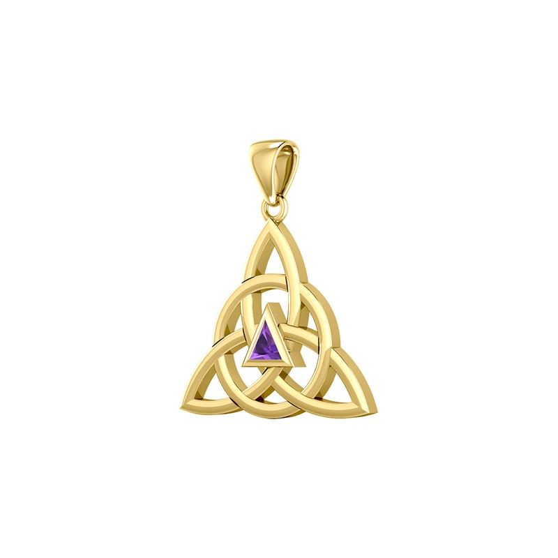 This Celtic Triquetra pendant, made of solid yellow gold, features an intricate design and is accented with a beautiful gemstone. Perfect for those seeking a symbol of recovery and strength, this pendant is a meaningful and timeless addition to any jewelry