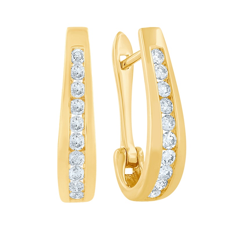 Add sparkle to your day with a pair of these J-hoop diamond earrings. Crafted in 10K yellow gold, these beautiful earrings feature 20 channel-set round brilliant diamonds, offering a total diamond weight of 0.50 carats. These would be perfect with any outf