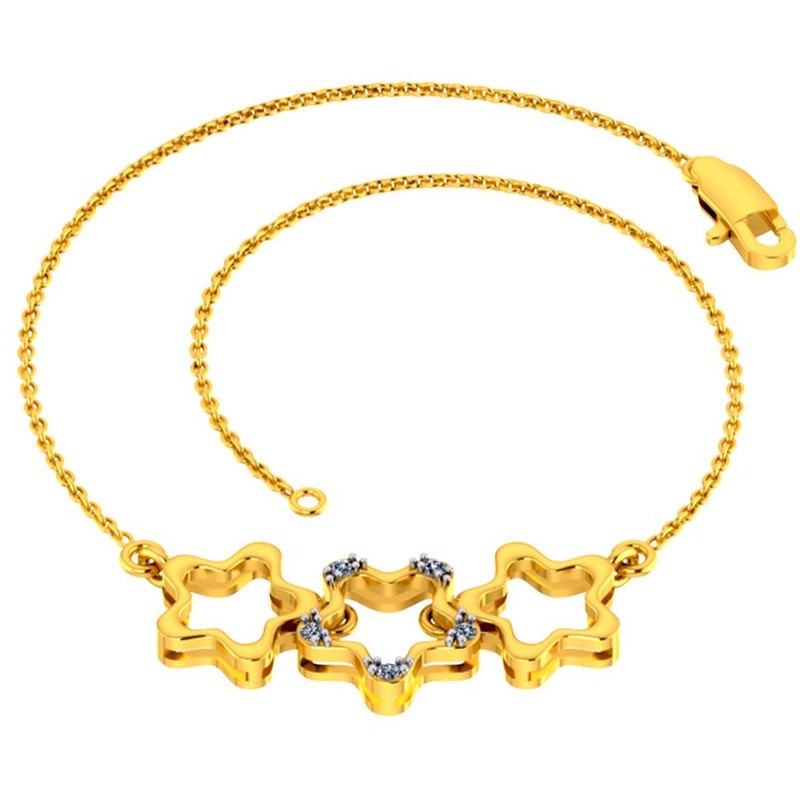 Bring home this unique piece of gold and diamond jewellery and adorn it with your favourite outfit. This lovely star designed gold and diamond bracelet is one of a kind. The absolutely light weight jewellery can satisfy your quest for unique design. We provide BIS hallmark certification and SGL/EGL certification with our every piece of jewellery to prove its purity and authenticity.