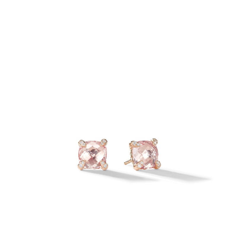 Chatelaine Stud Earrings in 18K Rose Gold with Morganite and Pave Diamonds