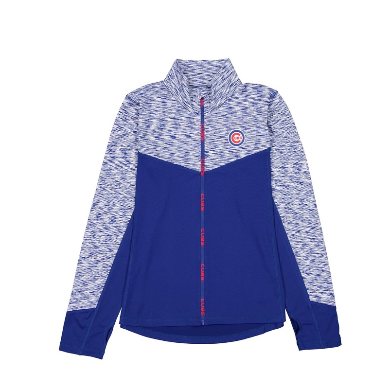 The Chicago Cubs Active Women’s Jacket features a screen-printed Cubs logo at the left chest with a team wordmark detailed full zip closure.