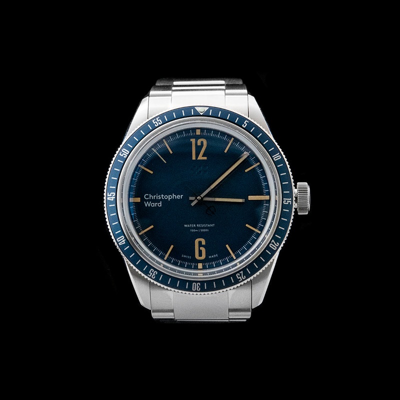 WHAT WE LOVE: A very carefully designed diver with a twist. This watch is hand-wound which means it can easily slip beneath a cuff. Brand: Christopher Ward Reference: C65 Trident Diver Model: Trident Diver Movement: Swiss hand-wound Case Material: Stainles
