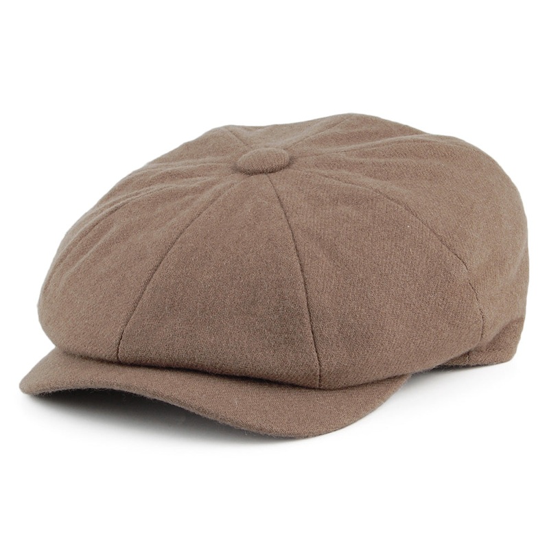 This is the Joshua Ellis Wool Sateen Newsboy Cap in light tan from Christys’. This great cap is made of 100% wool. The inside features a satin lining and a grosgrain sweatband for comfort. The cap has a a sewn down brim. A great classic for every day!
