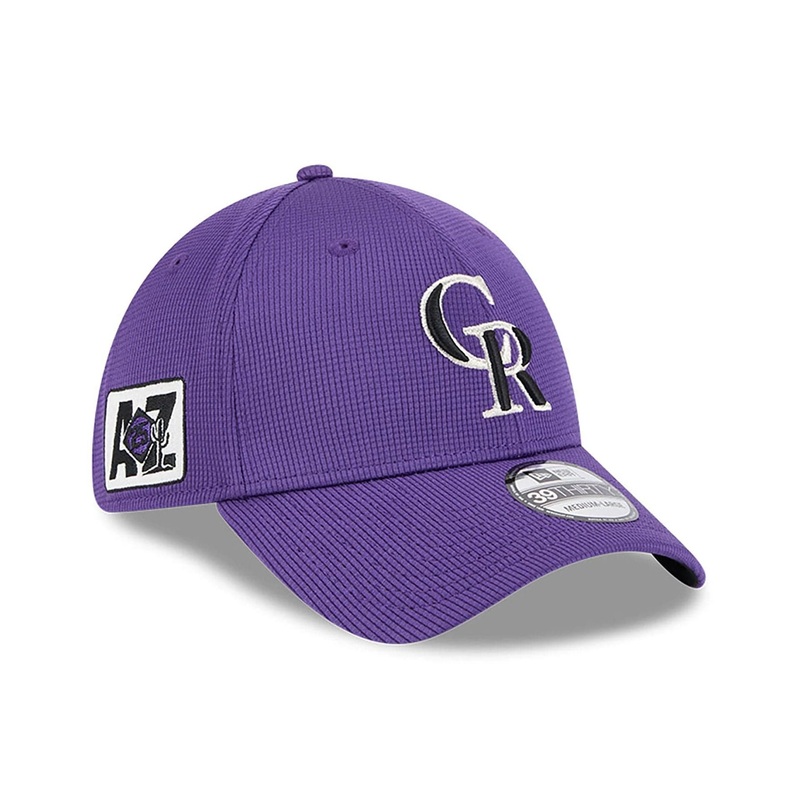 Spring Training 2025 Colorado Rockies 39THIRTY Stretch Fit CapColorado Rockies Cooperstown logo on frontSpring Training 2025 sidepatch on rightColorado Rockies wordmark on rearNew Era Flag embroidered on leftStructured crownStretch-FitCurved purple visorBl