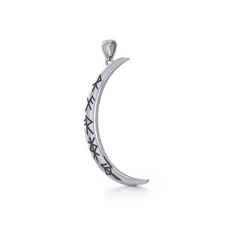 Crescent Moon with Meaningful Bind RunesLarge PendantTPD5833The Moon's tranquil waltz around the Earth classified into rhythmic parts we call phases namely New Moon, Crescent, First Quarter, Gibbous, Full Moon, Last Quarter, Disseminating, Last Quarter, an