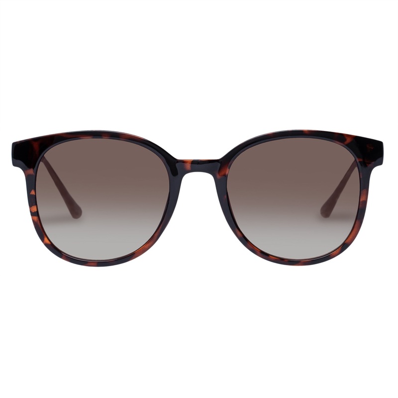 Finished in a dark tort frame with brown gradient lenses.