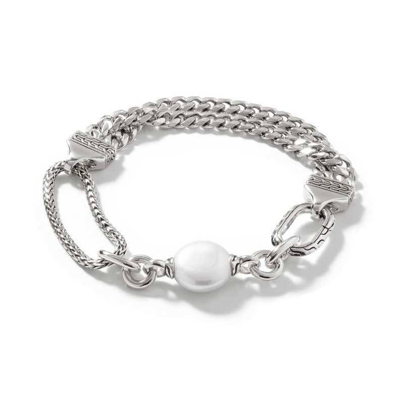 Classic Chain Silver Bracelet with Seamless Clasp with 13-14mm White Coin Cultured Fresh Water Pearl, Size UMStyle# BU900802XUM