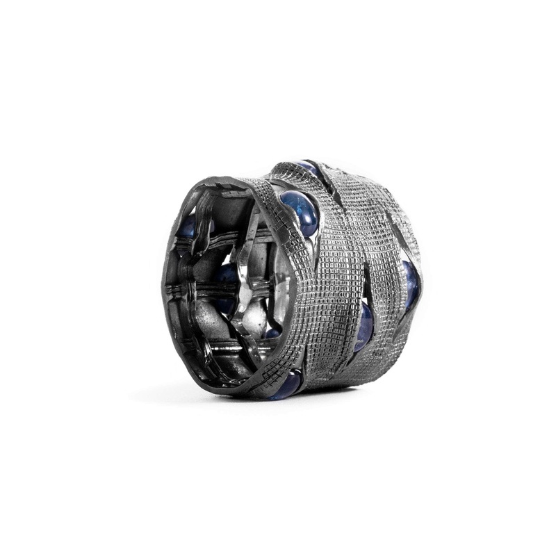 Hello, little blue eyes exploring the world for the vey first time. What will you see? Black rhodium-plated sterling silver ring with natural blue sapphire. In addition to our Woven collection, based on 's inventive technique of metal and stone casting. Pl