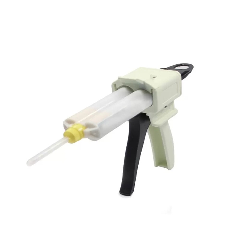 It consists of a release lever and a plunger, which are coordinated simultaneously to load and remove the cartridge. The gun also consists of a trigger to dispense the material. Works with 1:1 and 2:1 50mL cartridges. Compares to Dispensing Gun and Extruder.