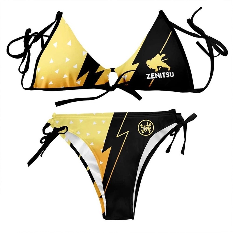 Demon Slayer Agatsuma Zenitsu Bikni Swimsuit Two Pieces Set Cosplay Costume Outfits Halloween Carnival Suit