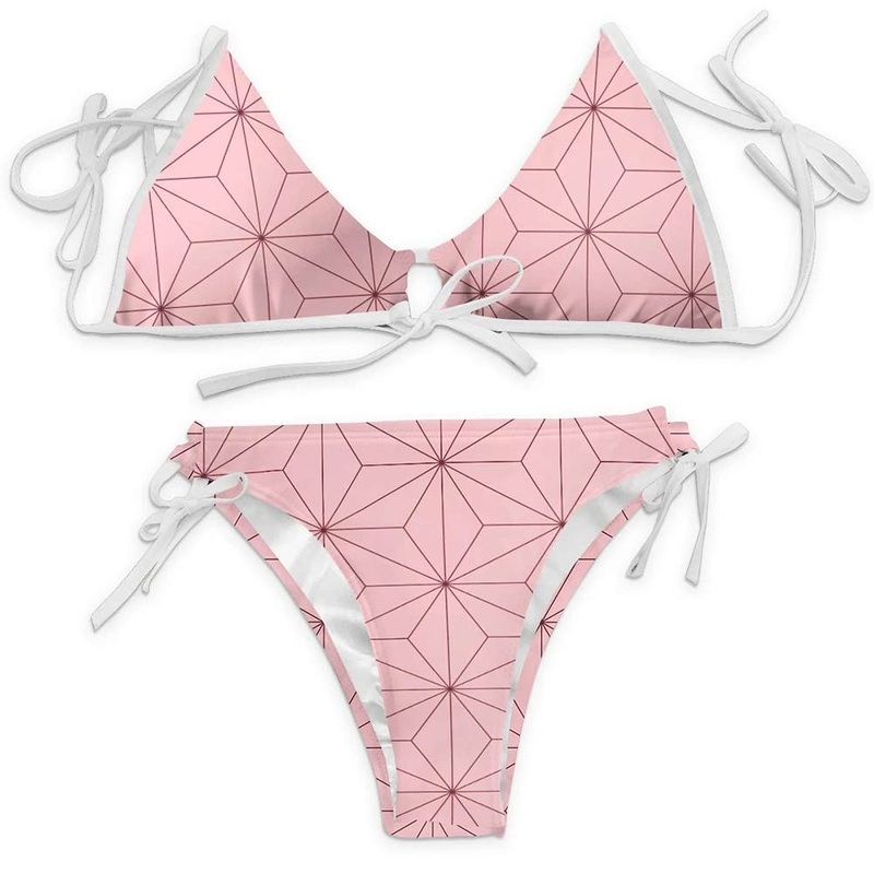 Demon Slayer Kamado Nezuko Bikni Swimsuit Two Pieces Set Cosplay Costume Outfits Halloween Carnival Suit