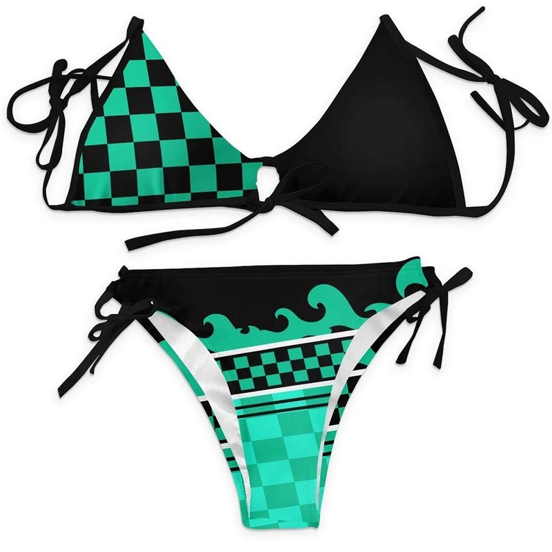 Demon Slayer Kamado Tanjirou Bikni Swimsuit Two Pieces Set Cosplay Costume Outfits Halloween Carnival Suit