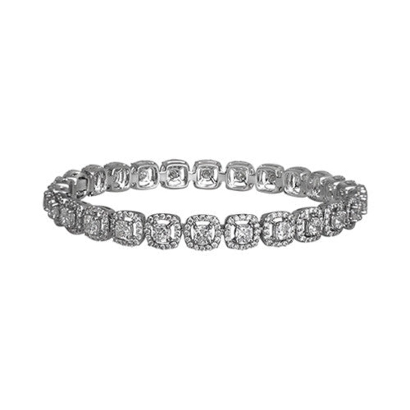 Each diamond in the bangle has been carefully mounted to create a series of rounded-corner square elements, allowing the light to dance at any angle. When set against gleaming white gold, the diamondstotaling7.80 caratspresent a dazzling, eye-catching composition worthy of fine art. Diamond bangles go brilliantly with practically any outfit, from a light, on-the-go sundress to a refined designer gown.