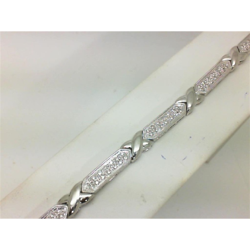 LADY'S YELLOW 14 KARAT FANCY LINK BRACELET WITH = 0.37TW ROUND DIAMONDS