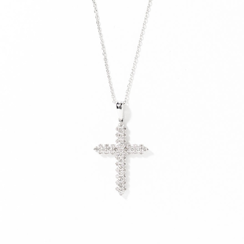 A brilliant way to honor your faith. Finely crafted in 10K white gold, this lovely cross pendant sparkles with 50 round brilliant diamonds. It offers a total diamond weight of 0.50 carats and a matching chain is included.