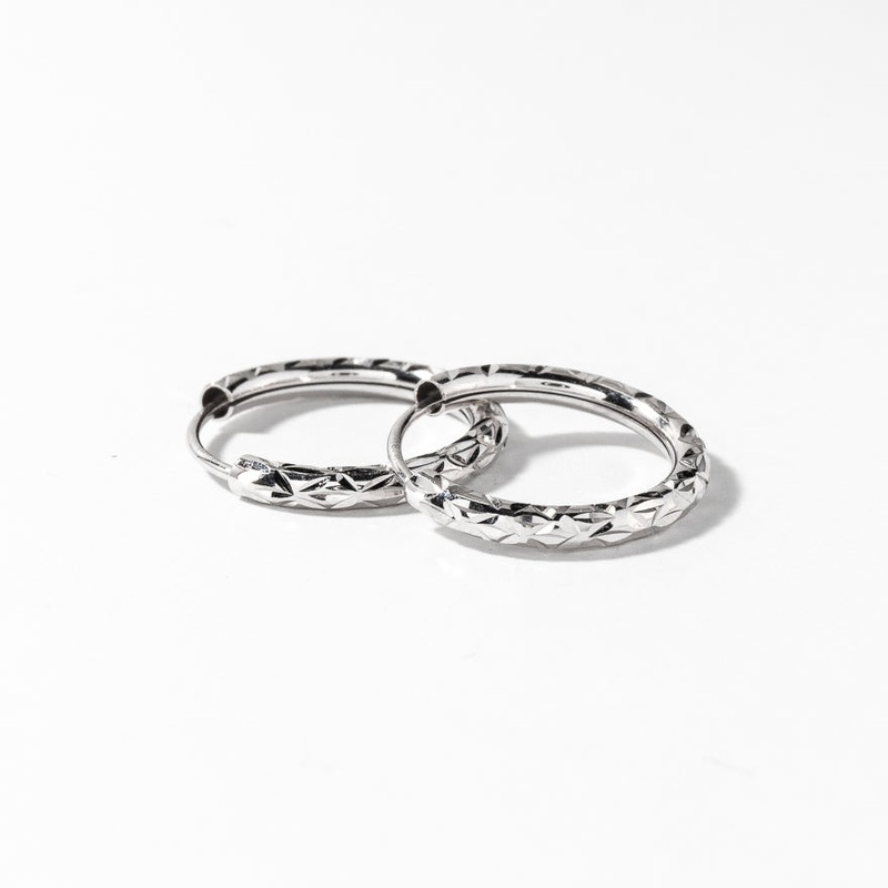 Elevate your jewelry collection with these exquisite hoop earrings, designed to captivate with their timeless charm. Crafted from 10K white gold, they showcase a stunning diamond-cut pattern. Measuring 50mm in length and 2mm in width, these earrings blend classic elegance with modern sophistication.