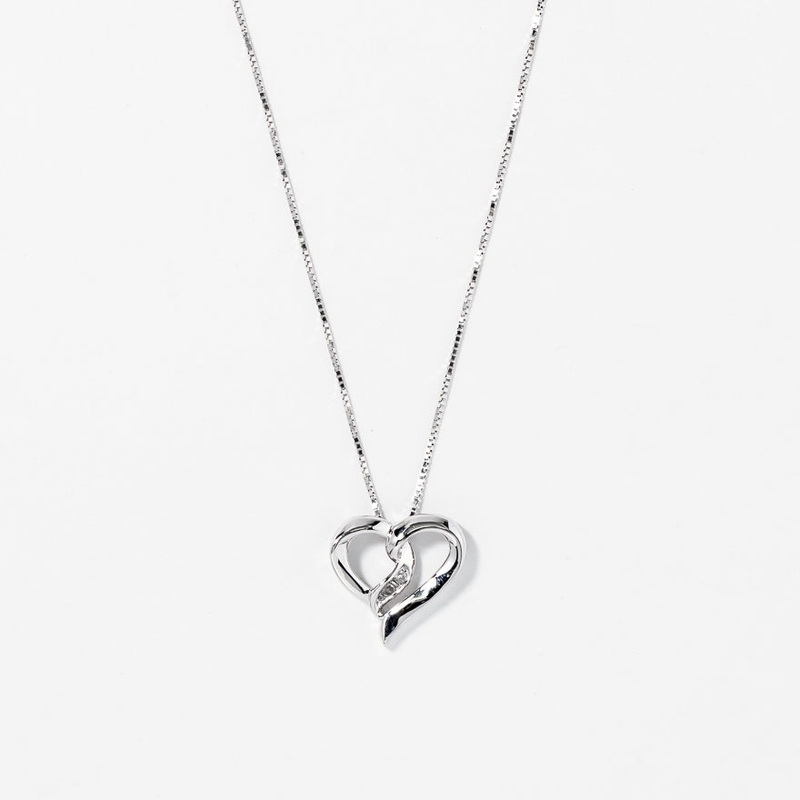 Diamond Heart Ribbon Necklace in 10K White Gold (0.015ct tw)