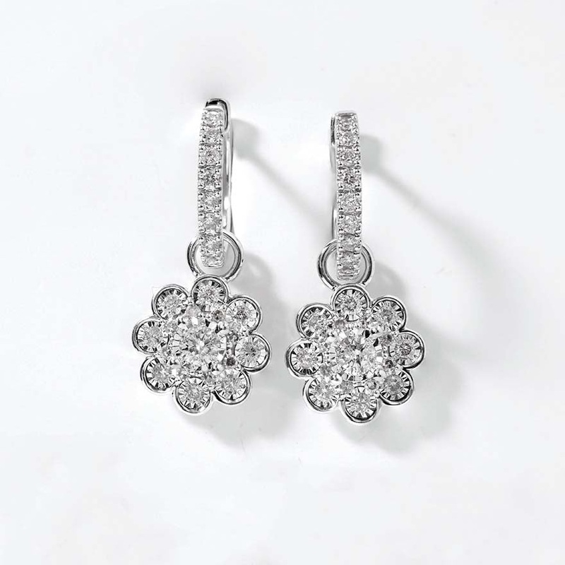 These elegant earrings are a part of our multi-look collection and areperfect for any occasion. Finely crafted in 10K white gold, it is adorned with 52 round brilliant diamonds for a total diamond weight of 0.88 carats. This versatile design incorporates a removable flower charm, allowing the wearer to wear the hoops on their own. These earrings are sure to give you that extra touch of sparkle.