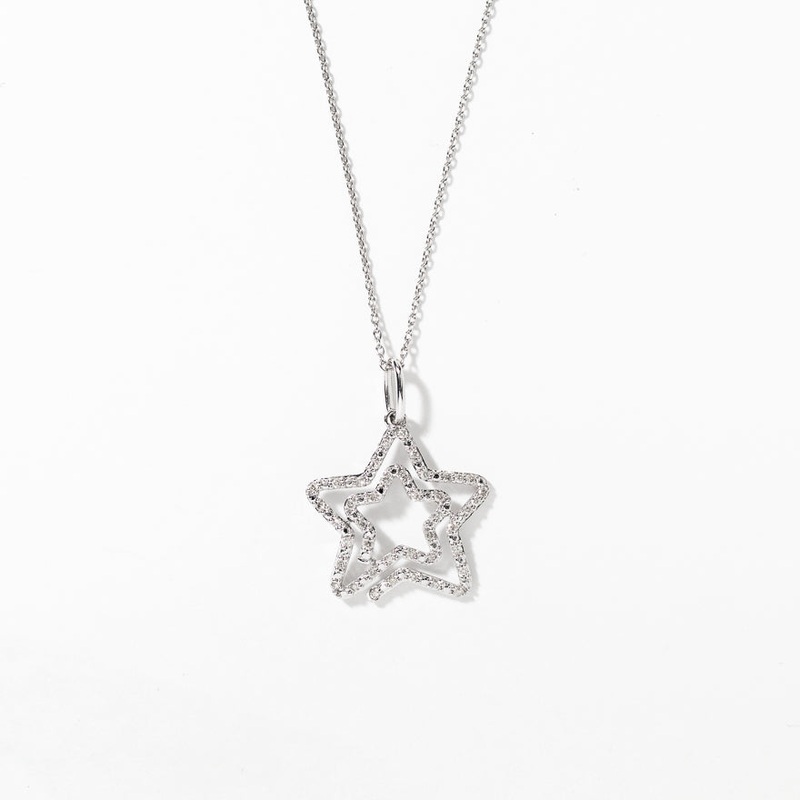 Double Star Diamond Pendant Necklace in 10K White Gold (0.16 ct tw)