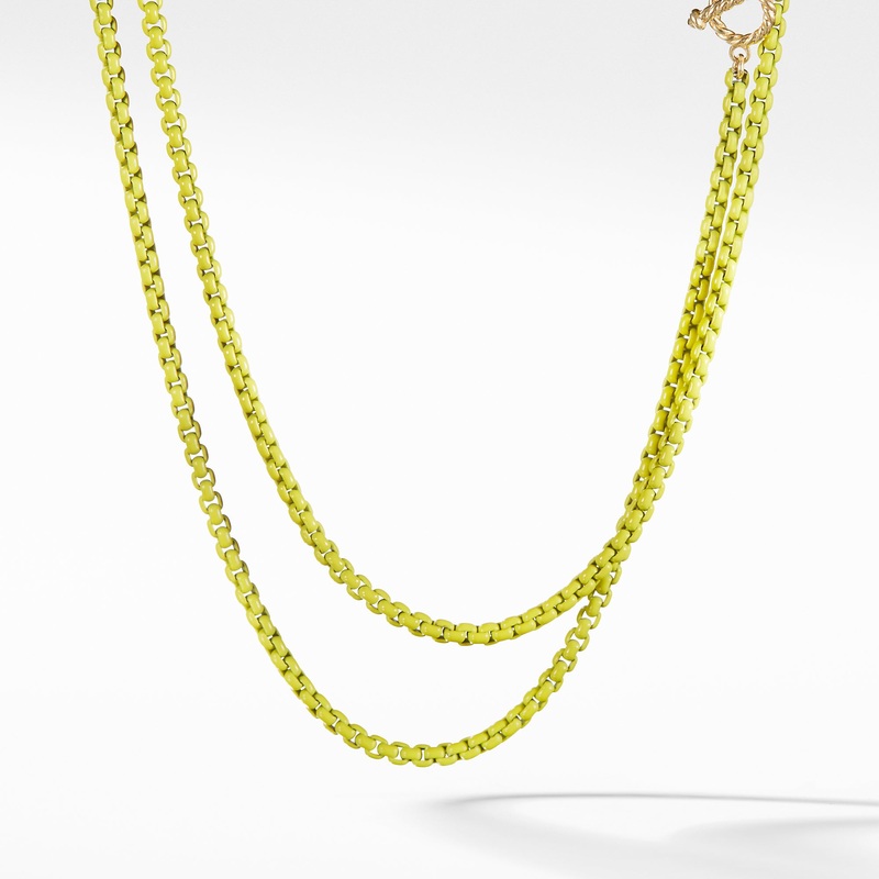 Stainless steel coated with yellow colored acrylicand 14-karat yellow gold accents Total Length, 41 Convertible Chain: Can be worn as a necklace or wrap bracelet Toggle Clasp- Also available with 14-karat yellow gold accents Ref: N13302 L4YLW41
