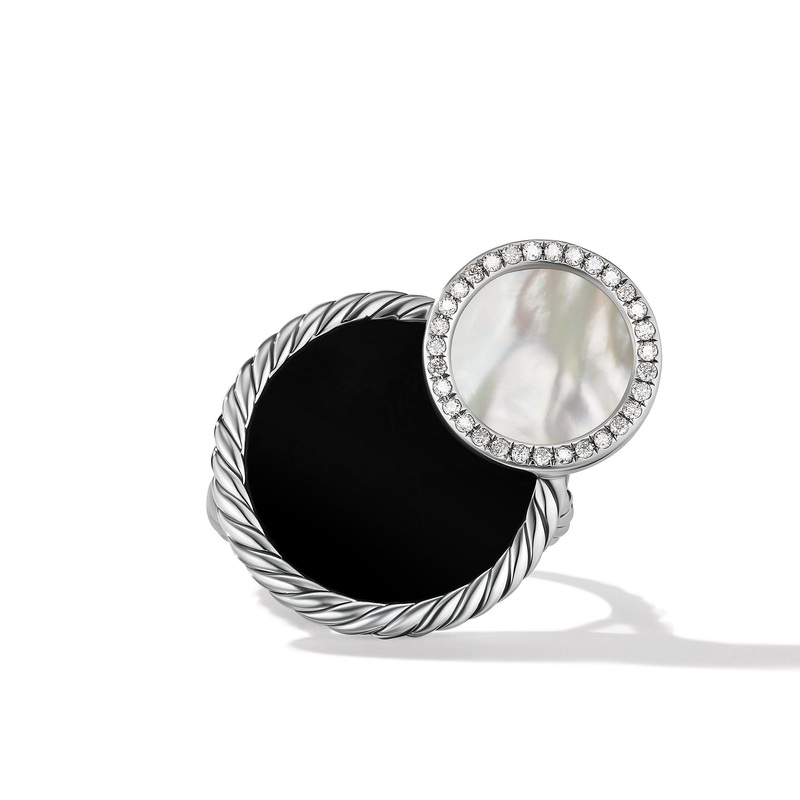 Sterling Silver Black Onyx and Mother of Pearl, Pav Diamonds, 0.16 total carat weight, Ring, 23.7 x 26mmREF# R17372DSSHBOMPDI7